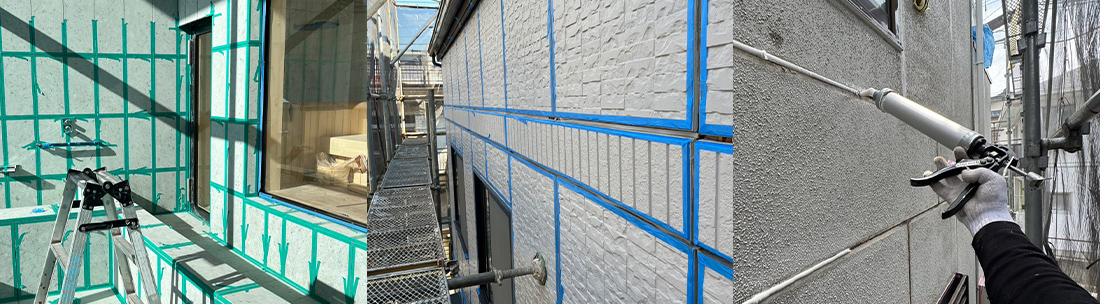 シーリング工事は、弾力のあるシーリング材で外壁やサッシのつなぎ目を埋め、